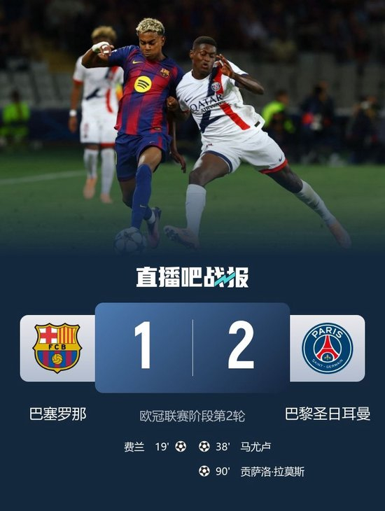 直播吧10月2日讯 欧冠联赛阶段第2轮,巴塞罗那坐镇主场路易斯孔帕尼斯奥林匹克体育场迎战巴黎圣日耳曼。上半场,拉什福德助攻费兰先拔头筹,扎巴尔尼门线解围+失良机,马尤卢扳平比分。易边再战,奥尔莫遭门线解围,李刚仁中柱,拉莫斯替补绝杀。最终巴萨1-2巴黎。积分榜方面,巴萨2轮3分,巴黎6分。
