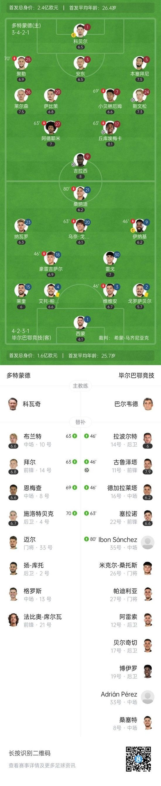 第81分钟,多特扩大比分!左路角球开到禁区第一点解围不远弧顶萨比策抽射打在吉拉西身上变线破门,多特3-1毕尔巴鄂。↓