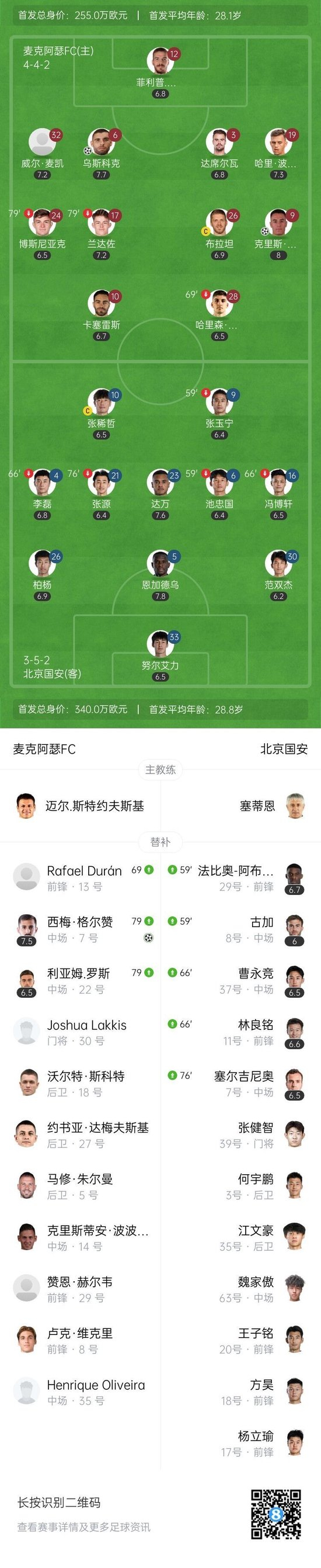 伤停补时3分钟。全场比赛结束,北京国安0-3麦克阿瑟FC。