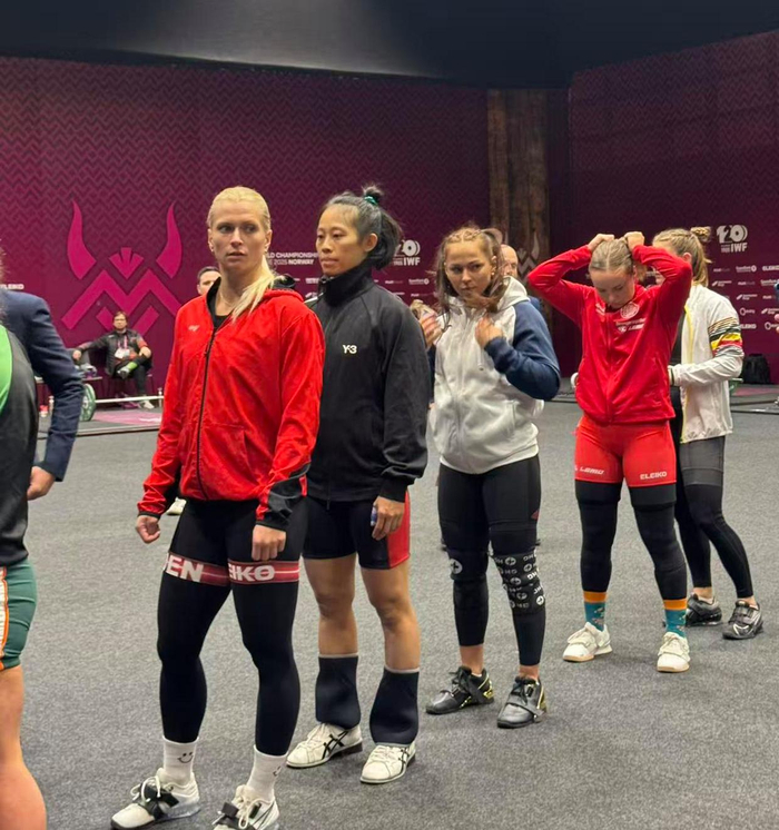 郑静淘(左二)在世锦赛现场。谭伟基供图对她而言,世锦赛“首秀”更像一场“学习之旅”:“我经历了长途奔波、交通不便、气候时差等多重考验,很多规则也不太了解……这些都是经验积累。如果把举重当职业,压力会大得多,那是‘工作’。我现在是休假状态,带着兴趣来比赛,享受过程。”