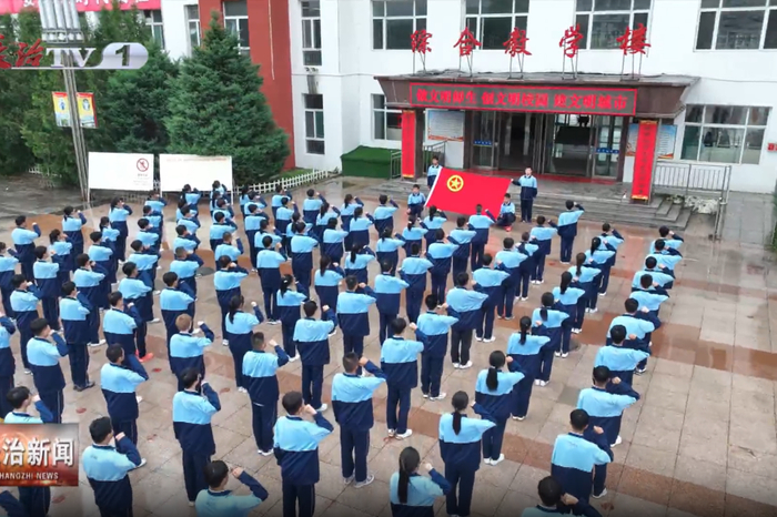 山西省沁源县第一中学的学生们在观看完思政大课后,面向团旗庄严宣誓