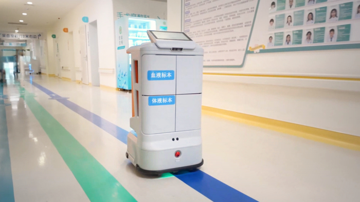 自2022年3月起,智能物流机器人正式入驻佑佑宝贝妇儿医院,它们搭载AI智能,每日灵活穿梭于各科室,专职进行样本无接触配送。凭借智能避障、自动乘梯等“黑科技”,机器人不仅大幅提升了转运效率,更以全程隔绝人为接触的方式,确保了样本安全性。