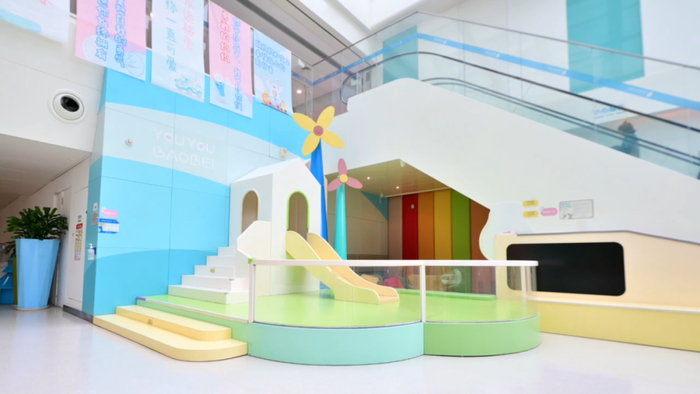 翻开佑佑的老相册,2018年的诊室还是“白色墙面 +简洁桌椅”的单调模样,等候区只有几组沙发;如今再走进医院,蓝色太空主题诊室里,孩子会指着墙面的卡通图案忘记紧张,等候区成了“小型游乐场”,滑梯、绘本架让等待时间变成“小快乐”。