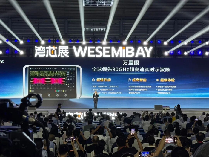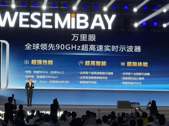 发布会上,子公司"万里眼"推出的90GHz超高速实时示波器,直接刷新了国产仪器的性能上限: