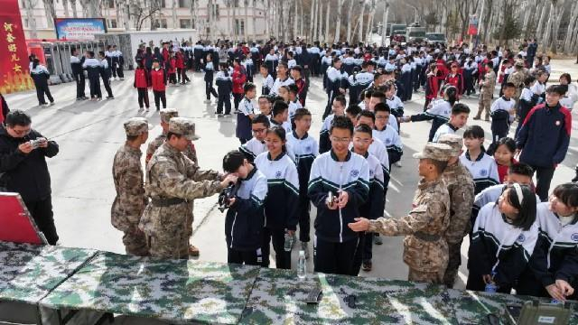 10月15日上午8点,在内蒙古巴彦淖尔市,衡越实验中学的师生一起去当地武装部参加了一场社会实践活动,不少同学近距离接触枪械,内心非常兴奋,还有同学现场开启“教学模式”向其他学生讲解枪械相关知识,10月17日,衡越实验中学负责宣传的王老师告诉记者称,当天有两名教师带领37名学生一起去接受爱国主义国防教育,武器装备展示区吸引了众多学生的目光,从枪械模型到战车再到无人机,解说员详细介绍每种武器的性能与用途,师生们听得津津有味。