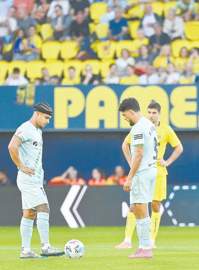 18日,西甲比利亚雷亚尔对阵皇家贝蒂斯的比赛中,球员站立不动以示抗议。(法新社)