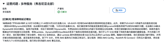 美西时间10月20日凌晨12点左右,AWS的核心节点之一美国东部1区(US-EAST-1)首先报告出现“显著的错误率和延迟”现象。