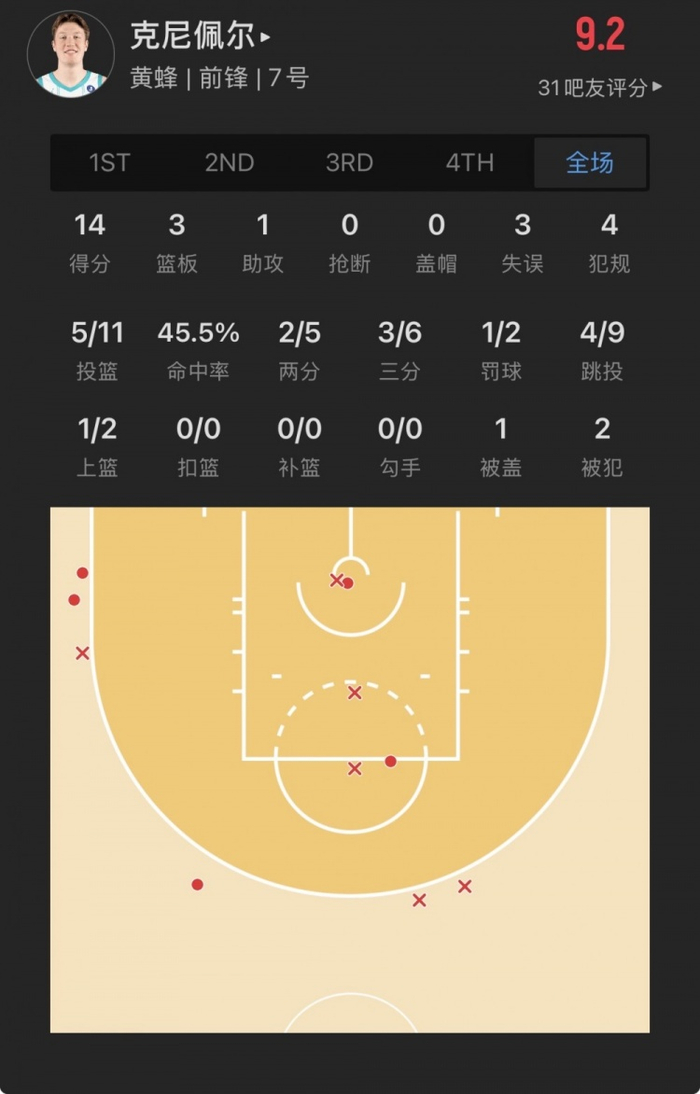 黄蜂4号秀 康-克尼佩尔 登场30.2分钟
