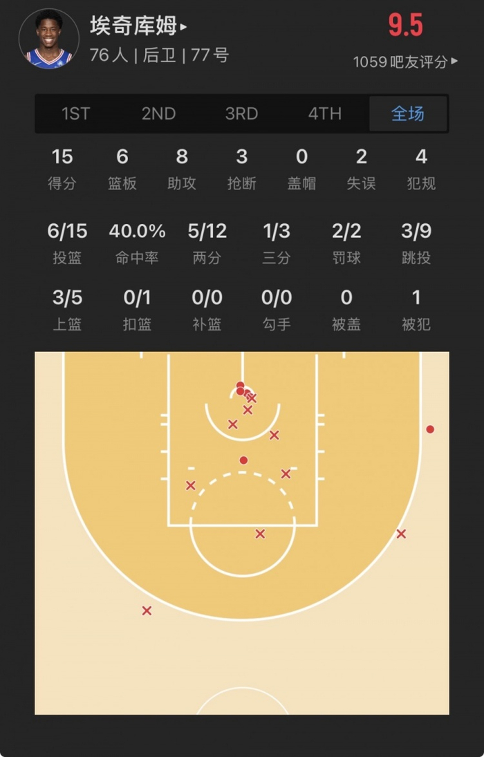 76人探花秀 VJ-埃奇库姆 登场39.6分钟