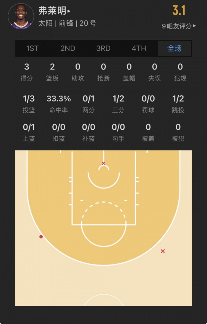 太阳31号秀 拉希尔-弗莱明 登场4.7分钟