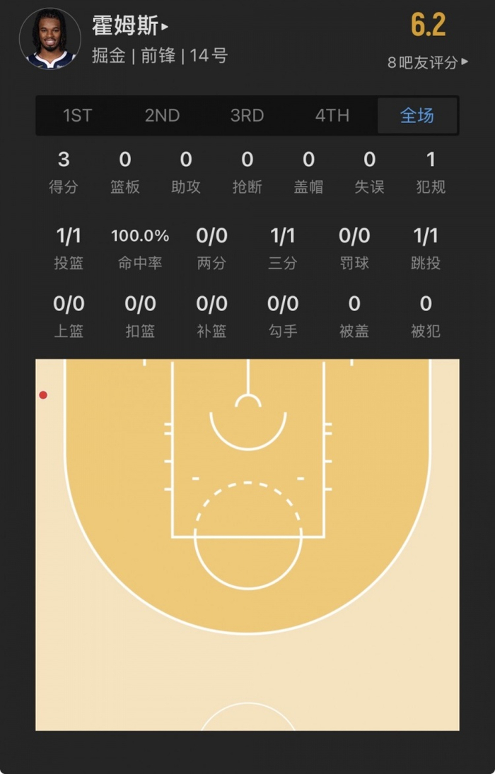 掘金上届22号秀 达龙-霍姆斯二世 登场3.0分钟