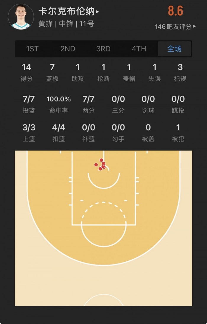 黄蜂34号秀 瑞安-卡尔克布伦纳 登场26.1分钟