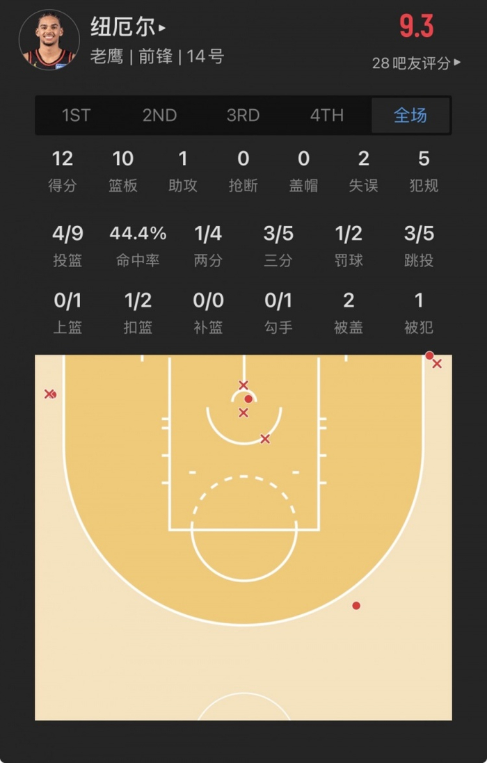 老鹰23号秀 阿萨-纽厄尔 登场24.8分钟