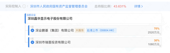 根据企查查股权结构显示,晶华电子控股股东为深业鹏基,持股比例为70%,间接控股股东为在港股上市的深圳控股,实际控制人为深圳市国资委。