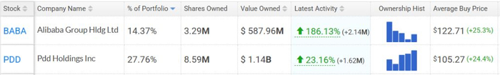 HHLR Advisors持仓中中概股市值占比超过90%,继续作为核心配置,凸显其对中国优质资产的长期看好。