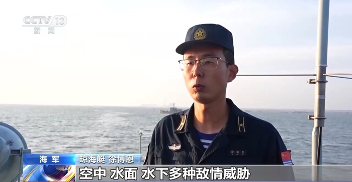 琼海艇 徐博恩:此次训练,我们精心构设了空中、水面、水下多种敌情威胁,全面检验了指挥员特情处置能力,通过高强度、快节奏攻防转换,官兵练指挥、练协同、练技能、练战法,全面锤炼了编队反水雷作战能力。