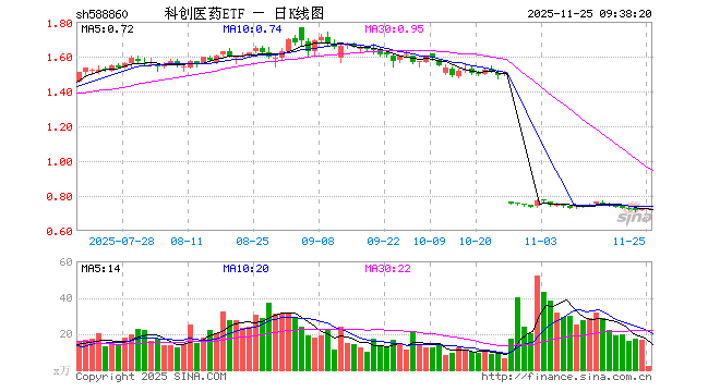 科创医药ETF(588860)开盘涨0.14%,重仓股联影医疗涨0.00%,百济神州跌2.48%