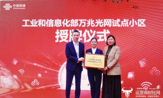 在“工业及信息化部首批万兆光网试点小区”授牌仪式上,深圳市工业和信息化局信息基础设施处副处长赵汉邦为万科集团及瑧山府小区物业代表授予这一具有里程碑意义的牌匾,前沿通信技术真正惠及千家万户。