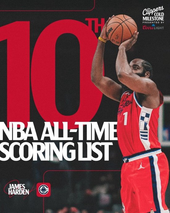 在第三节下半段,哈登造犯规两罚全中拿到第21分,生涯总得分正式超越了卡梅隆·安东尼(28289),跻身NBA历史得分榜第十。