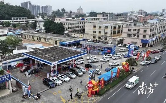 12月11日早上,位于江门市江海区江海二路的美孚加油站正进行促销活动,前来排队加油的车辆络绎不绝。不少车主发现,手持油枪的工作人员身边,多了一位身材姣好的模特,有的车主随手一拍发上网,有的上前合影留念。此等“新鲜事”,迅即成为当地热点广为转发。