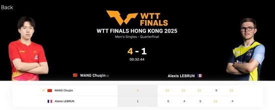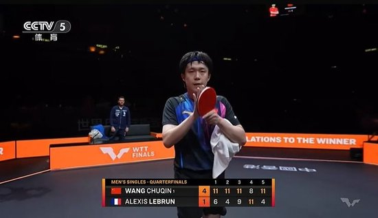 半小时速胜!王楚钦4-1大勒布伦,晋级WTT总决赛男单4强