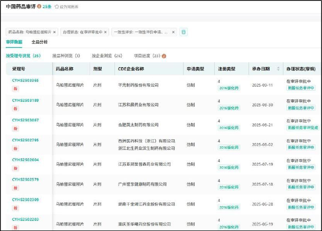 同时,原本乌帕替尼核心化合物专利权预计于2030年12月到期,但2023年8月国家知识产权局对于涉及乌帕替尼的核心化合物专利做出专利权全部无效或部分无效的决定,国内大批仿制药已经在路上,目前有26个仿制药企提交了上市申请,可以预见,扎堆获批不过早晚之事。