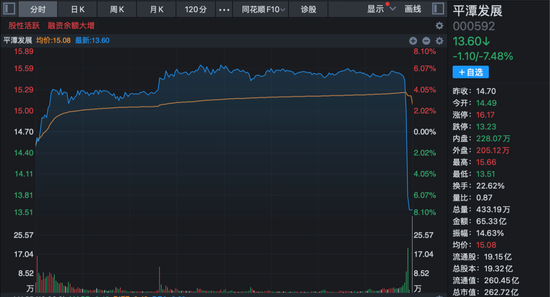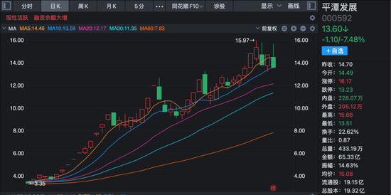 12月19日,A 股平潭发展(000592)尾盘闪崩。该股临近尾盘直线下跌,5分钟内,从涨超6%到跌近8%,最终收跌7.48%。该股是A股市场的大牛股,10月中旬以来的2个月里,每股价格从3.5元附近一路拉升至接近16元,涨幅超过300%。