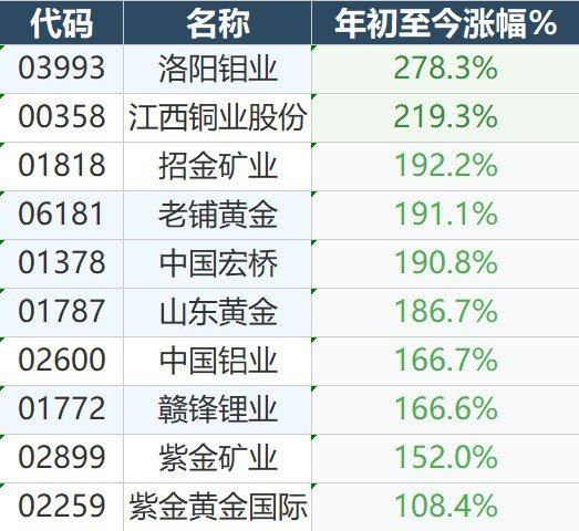 近一段时间来,黄金以及有色金属价格持续走高,也带动了相关板块的表现。今年以来,港股黄金及有色板块涌现了不少牛股,它们的股价都出现了翻倍,如:紫金矿业(HK02899)、洛阳钼业(HK03993)、紫金黄金国际(HK02259)、中国铝业(HK02600)等。