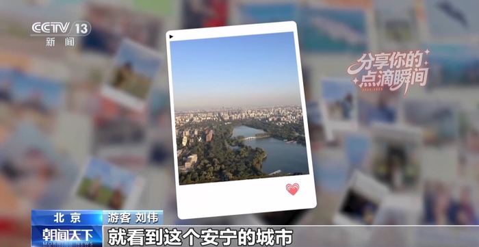 游客 刘伟:这是我前段时间登中央电视塔,在电视塔上拍到的鸟瞰图片。看到这个安宁的城市非常有序地运转,心里边特别震撼。看到咱们国家的发展、国家的速度,尤其现在咱们国家军事上的力量,歼-20、航母这些都是非常震撼的,相当于给我们普通老百姓一张大保单,有了这张大保单,谁也不害怕了。