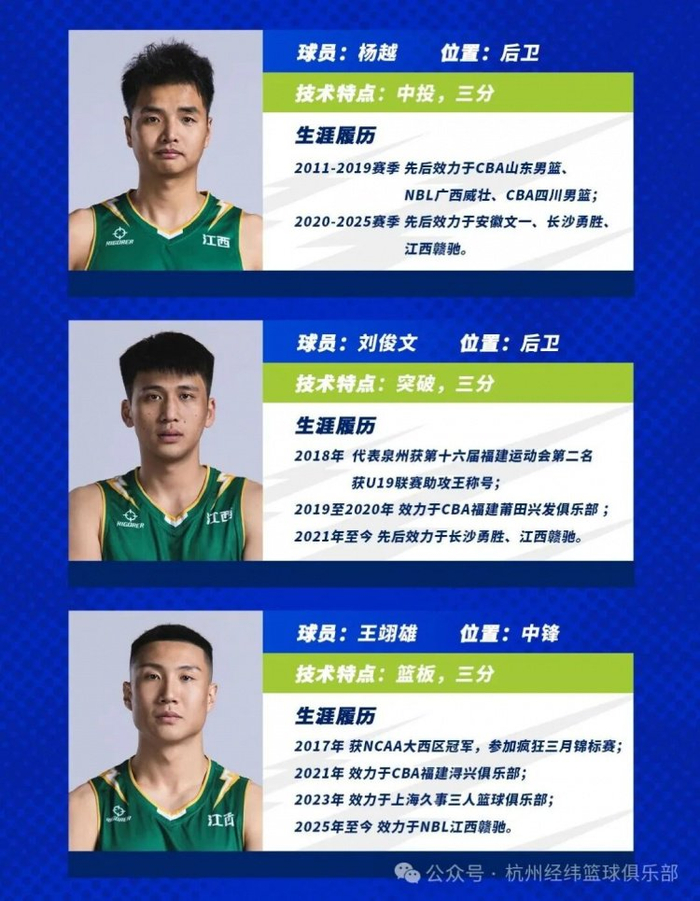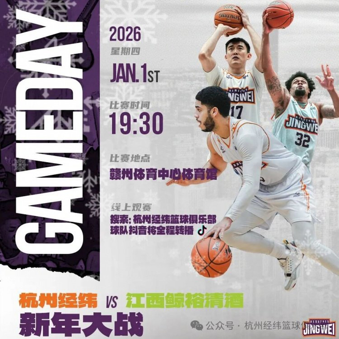 2026年1月1日19:30,2025-2026赛季NBL联赛常规赛第5轮,杭州经纬将在客场挑战江西鲸裕清酒。