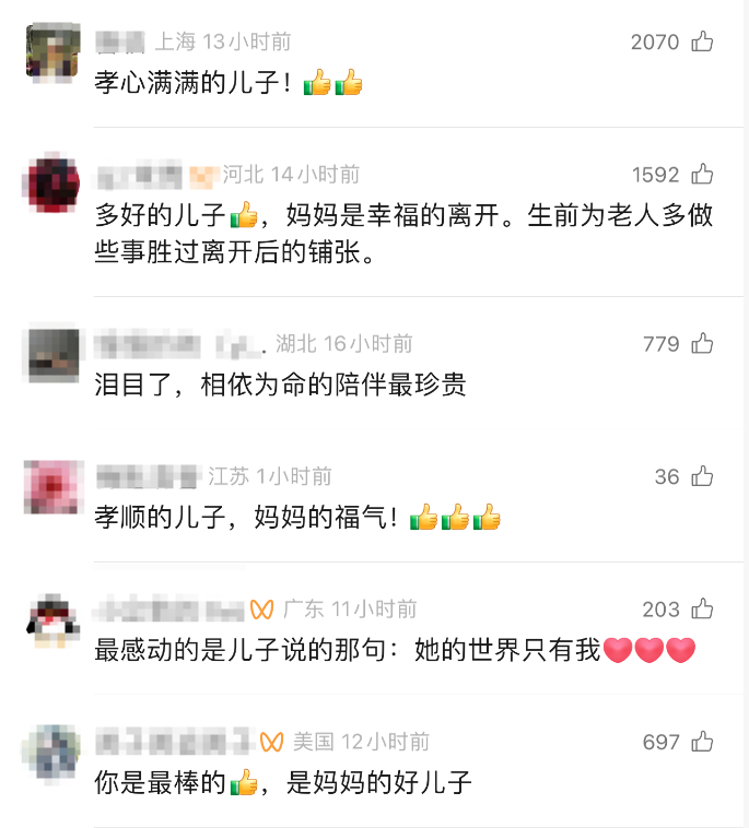 “泪目了!天下最好的妈妈,最孝的儿子”