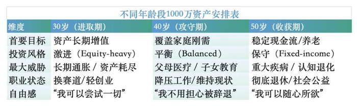 下面就是借助AI快速生成的不同人生阶段的总体建议对比:
