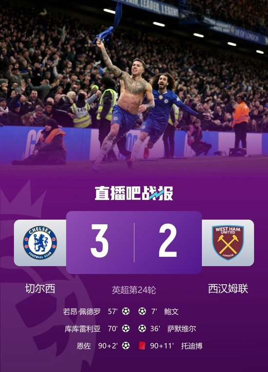 第90+2分钟,凯塞多送出直塞,禁区内若昂·佩德罗倒三角传球,恩佐跟进爆射得手,切尔西3-2西汉姆联。↓