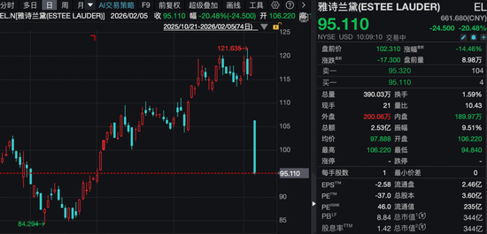 雅诗兰黛盘中跌超20%。消息面上,因营销成本增加,雅诗兰黛今年业绩指引低于预期。