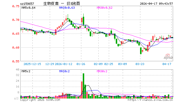 4月17日,疫苗ETF鹏华(159657)开盘跌0.78%,报0.637元。疫苗ETF鹏华(159657)重仓股方面,复星医药开盘跌0.37%,长春高新跌0.03%,智飞生物跌0.57%,沃森生物跌0.71%,万泰生物跌0.13%,华兰生物跌0.40%,昭衍新药跌1.64%,丽珠集团跌0.32%,辽宁成大涨0.00%,康泰生物跌0.28%。